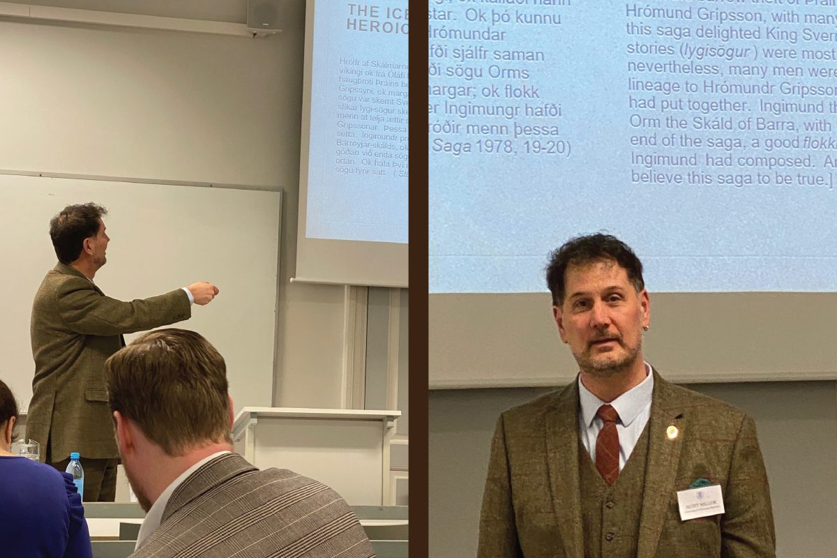 Scott’s presentation focused on the intersection between prose and poetry by looking at the heroic material in the Poetic Edda and the Saga of the Volsungs and the comparable mythic patterns and themes that can be found in both.