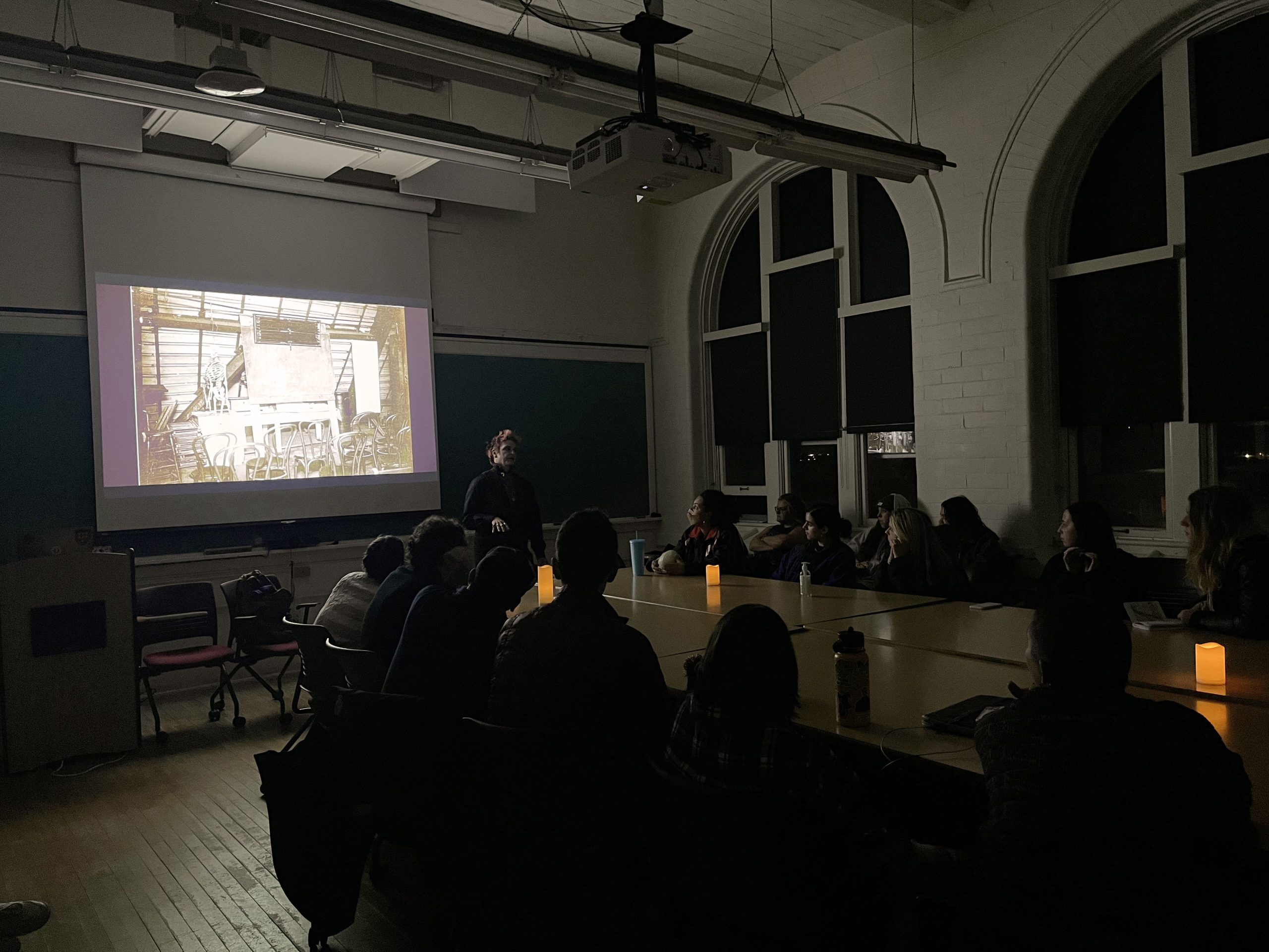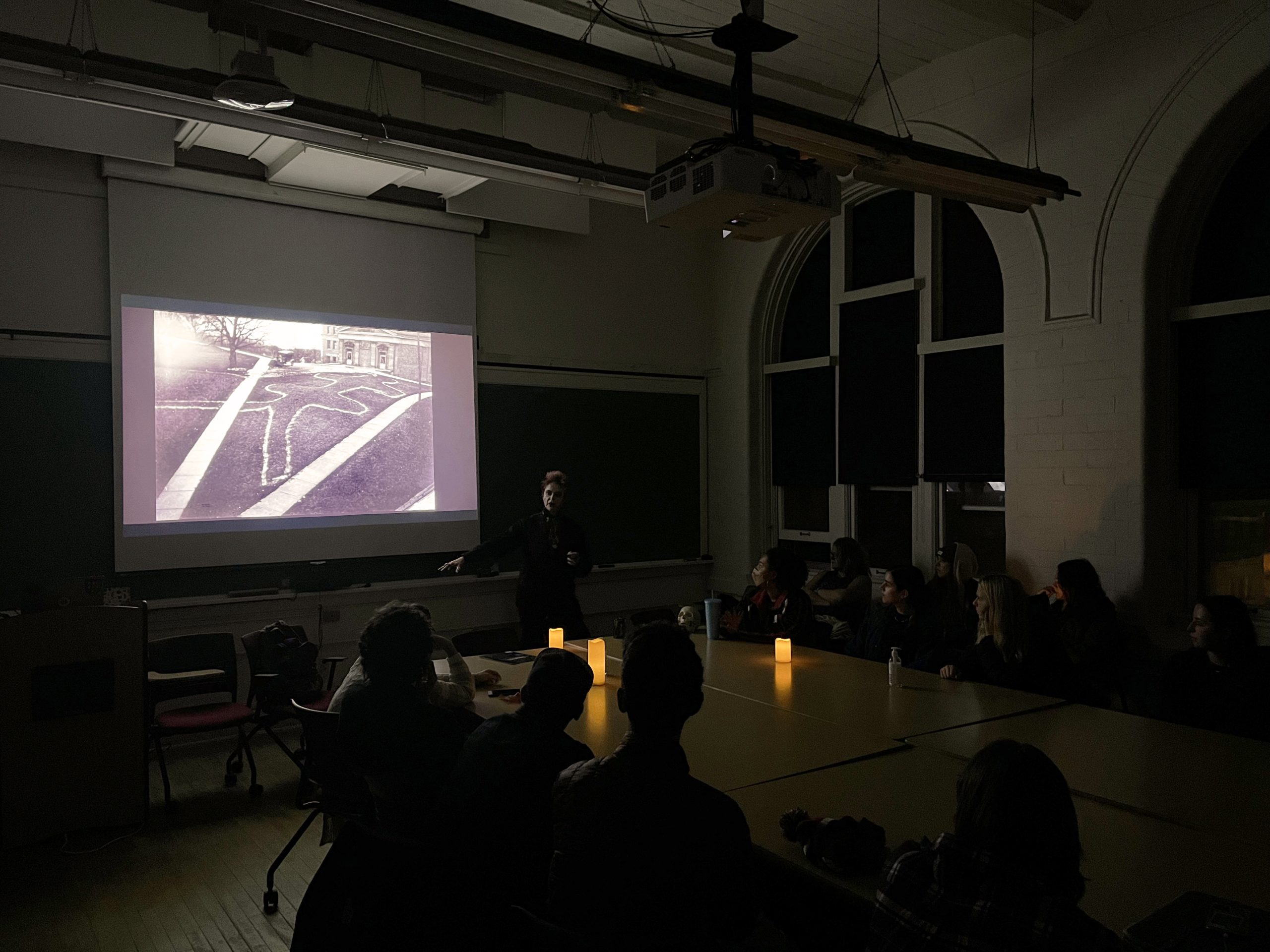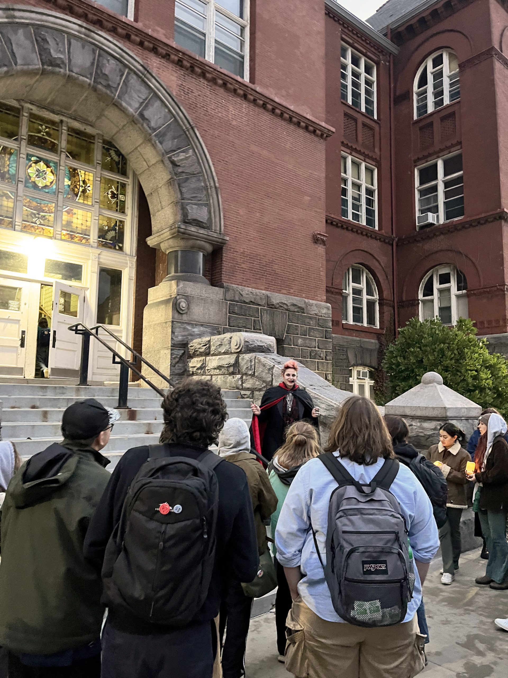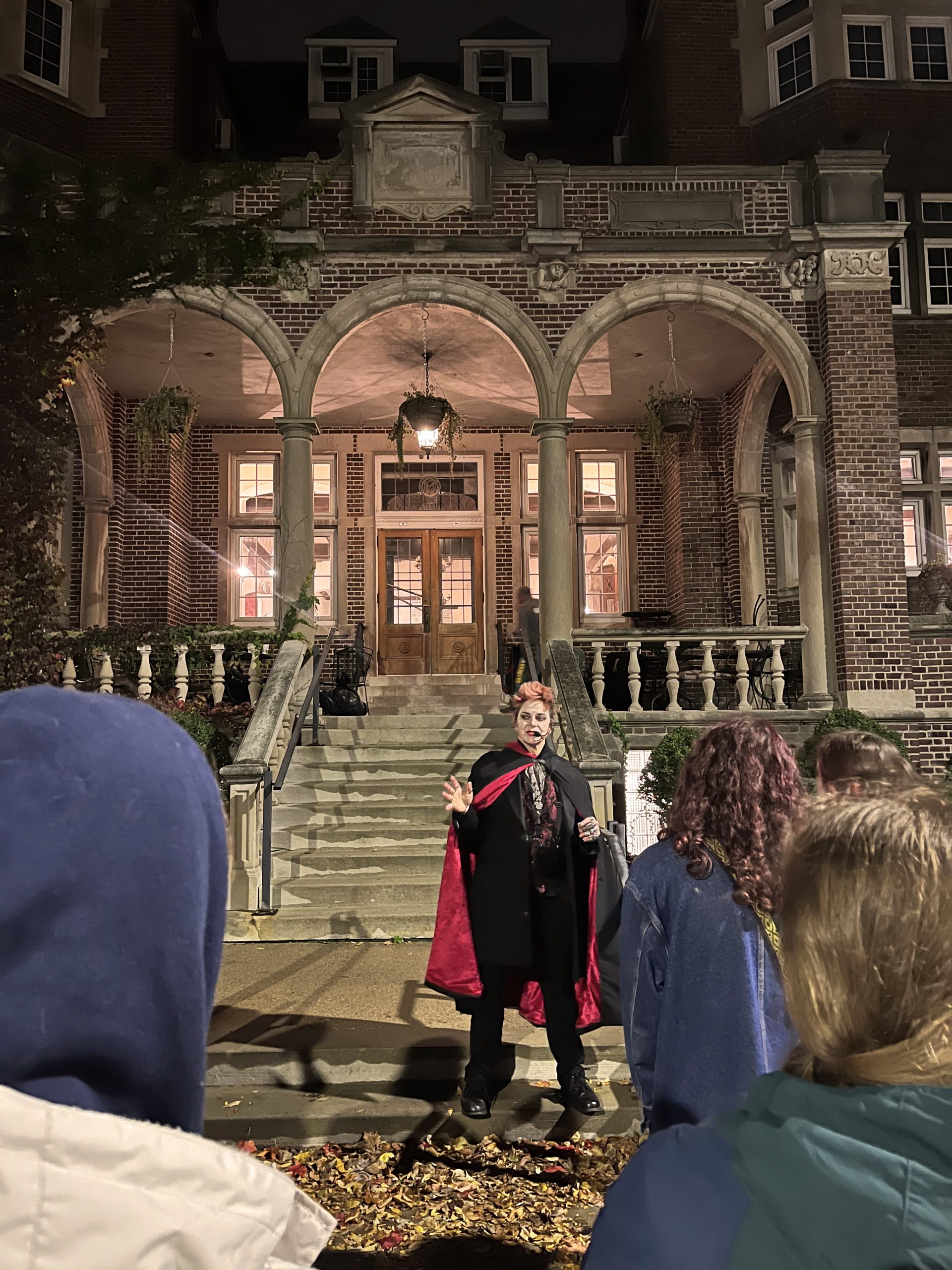 Despite (or perhaps because of?) the gloomy weather, we had a spectacularly spooky and intellectually stimulating supernatural UW tour last Wednesday evening, led by Madison Ghost Walks. Over 30 students showed up to prowl the campus hearing memorates, legends, FOAF tales, rumors, and other occult narratives, followed by a very illuminating presentation and Q&A by long-time local supernatural storyteller and ghost hunter (and former Madison firefighter!) Lisa Van Buskirk, who offered up some fascinating insights into her methods of researching Madison ghostlore, the ethics of haunted tours, and her choices as a professional performer of supernatural stories.